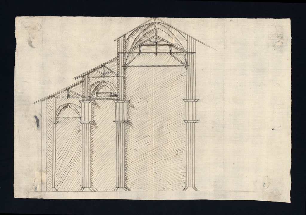 Sezione trasversale di parte delle navate con studio per ponteggiDatazione